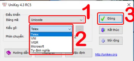 Tùy chọn kiểu gõ Telex hoặc VNI