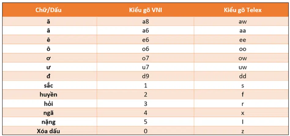 Kiểu gõ Telex hoặc VNI (tùy thói quen)